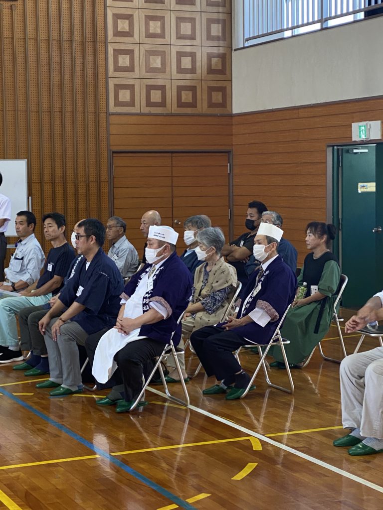 先ずは全体集会、5職種の体験講座、日本料理は、井上、柏木、田川の3名で対応です。