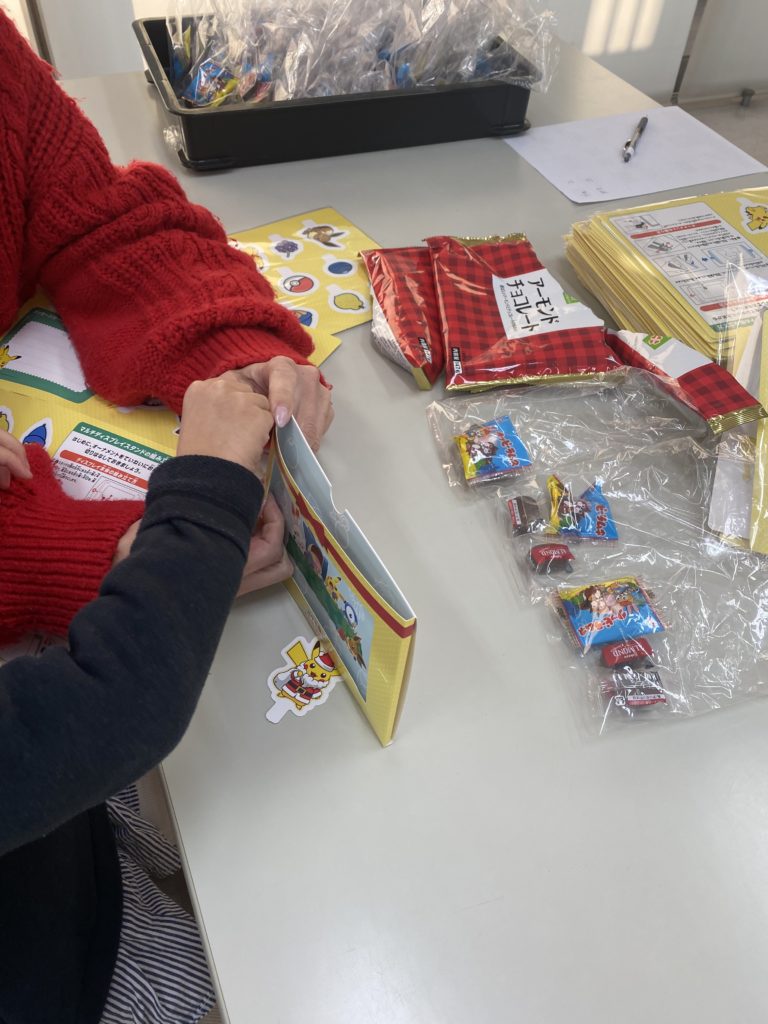 社会福祉協議会から頂いた、チョコレートに、ラムネを加えてプレゼントしました。