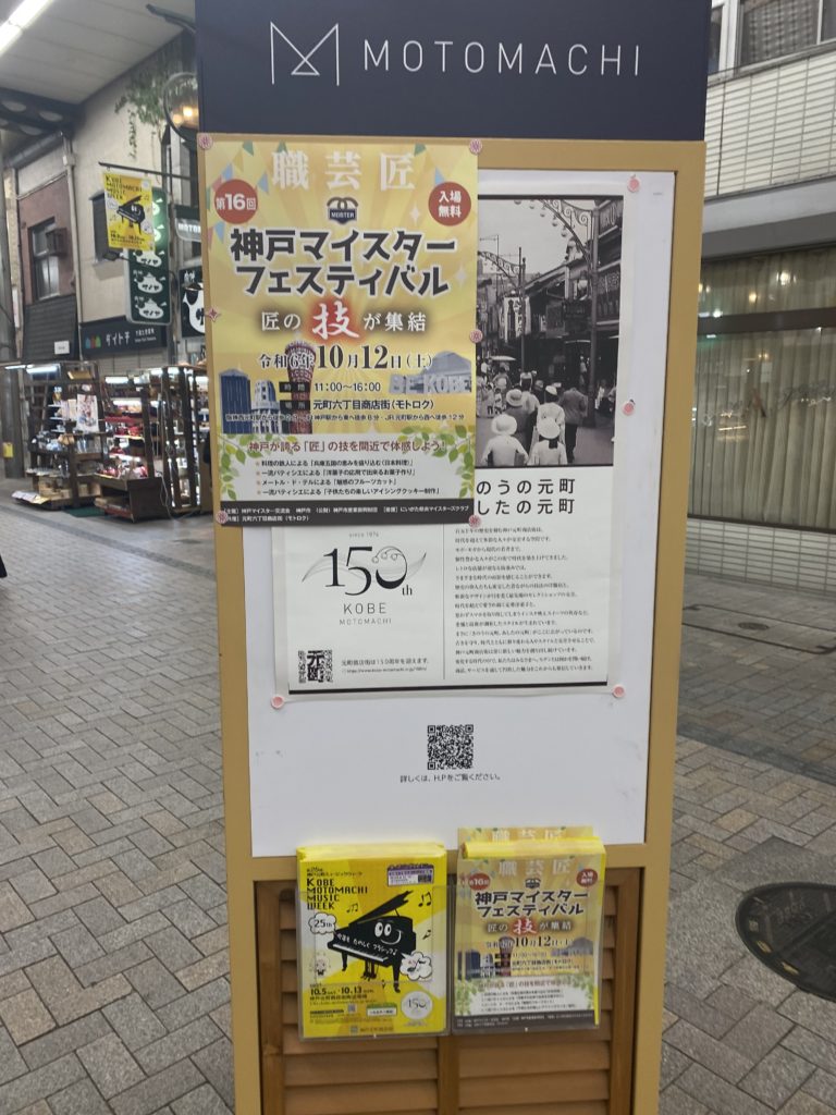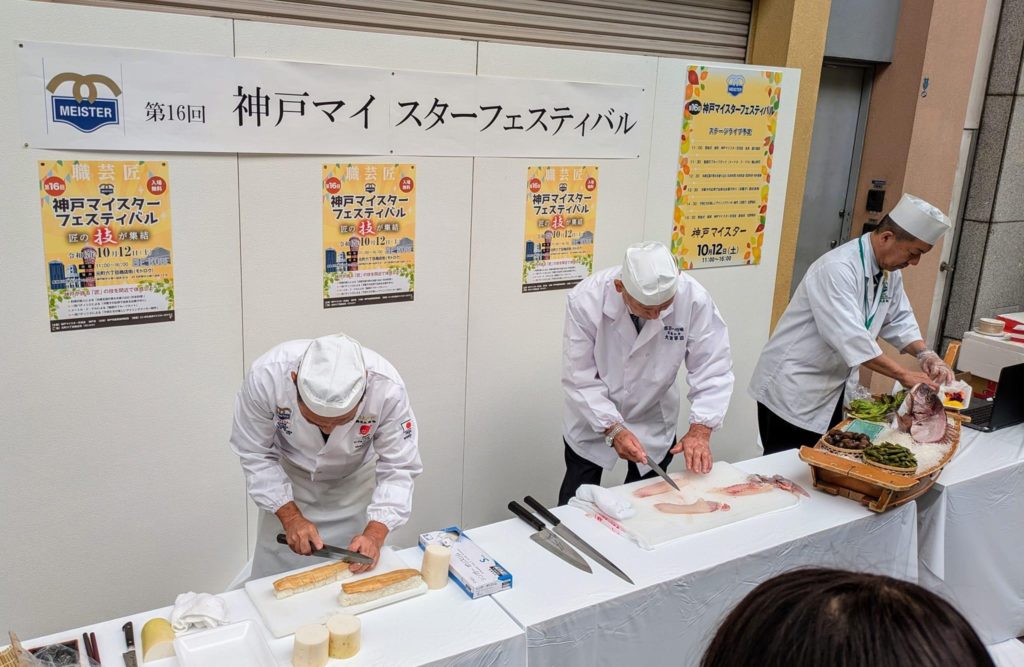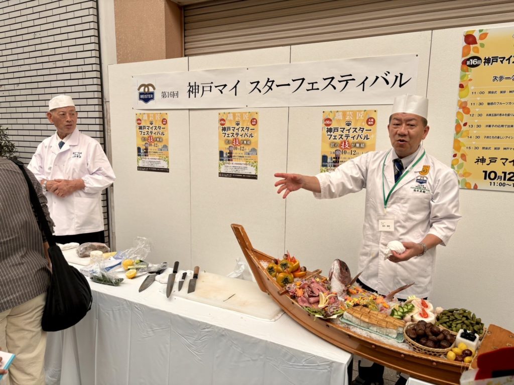 10月12日土曜日、神戸市元町商店街6丁目にて開催の、神戸マイスターフェスティバルに、大田会長、武田副会長、柏木事務局長が日本料理マイスターとして出演、ブースの展開を致しました。