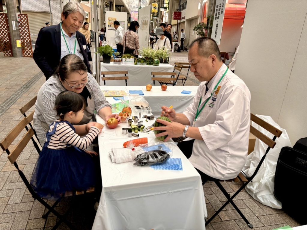 ブースでは、食彩細工の展示、体験コーナーも。