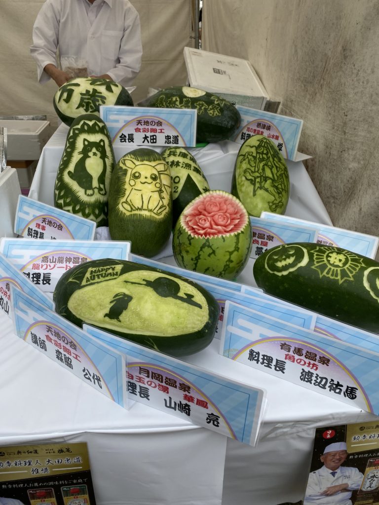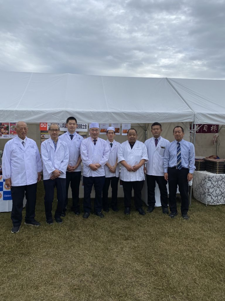 初日は大田会長を始め、若手のメンバーで、穴子入り稲荷鮨、鯛のあら炊き、オリジナルカレーの販売、食彩細工の展示です。