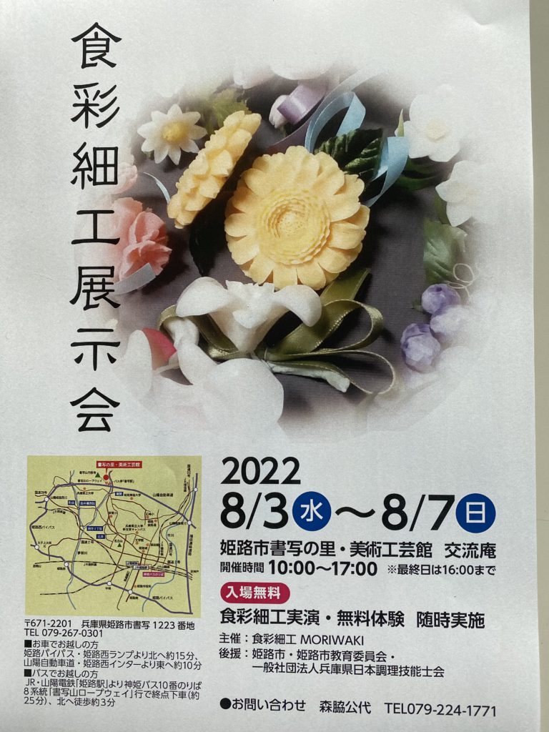 兵庫県日本調理技能士会の森脇さんの展示会が開催されます。