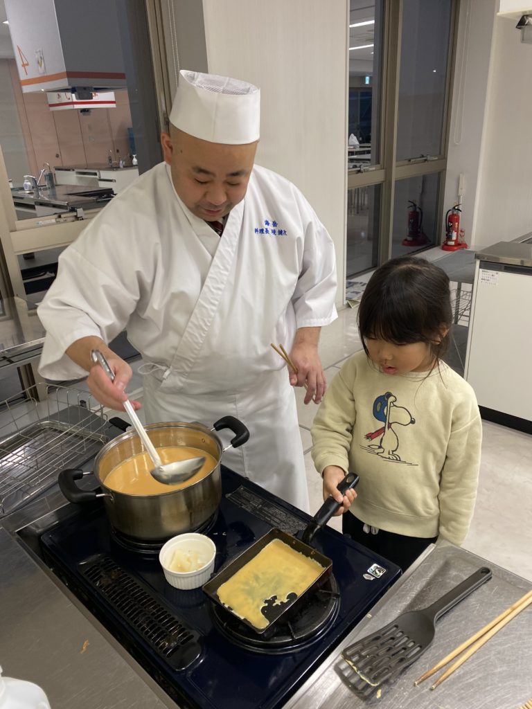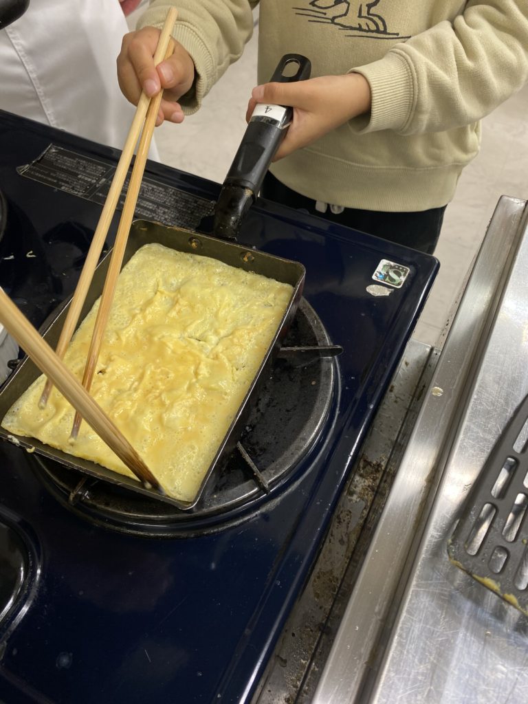 だし巻き卵も、今日が始めてのこども達も参加です。