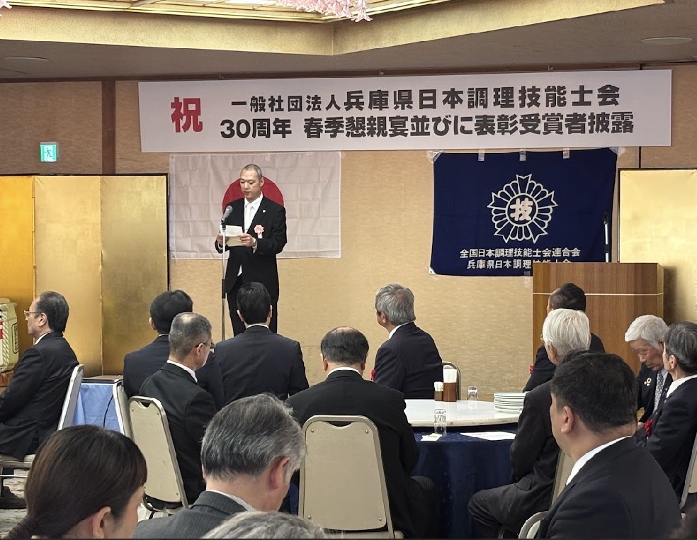 令和8年3月10日火曜日、神戸湊川神社の楠公会館にて、一般社団法人 兵庫県日本調理技能士会の30周年春季懇親宴並びに表彰受賞者披露を開催致しました。当日は、150名足らずの全国からのお客様を迎えての盛大な宴となりました。