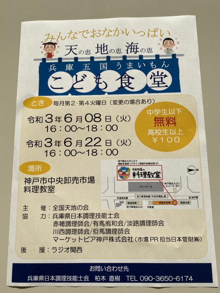 5月に続き、6月8日のこども食堂は緊急事態宣言延長のためお弁当の配布となります。20日で解除すれば22日は食育体験版に戻して行きたいと考えています。又、密を避ける為、時間を決めて行いますのでよろしくお願いします。