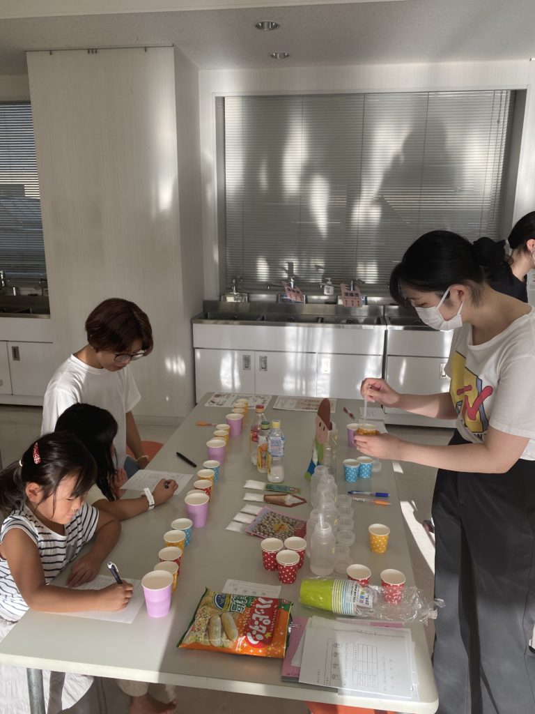 今日も、甲南女子大学のポランティアの皆さんと、味覚の検査に挑戦です。